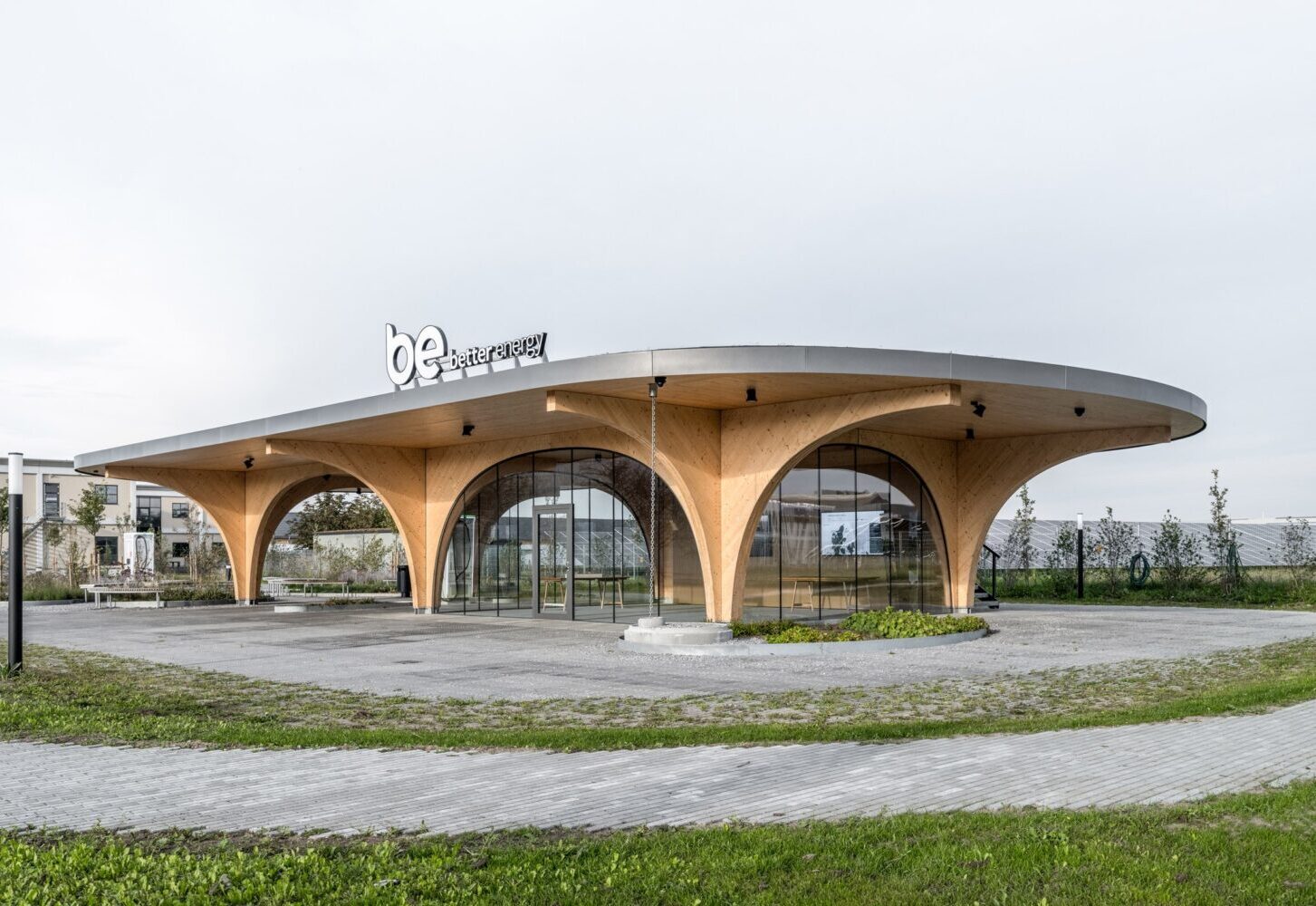 EFFEKT, bu projede ahşabı yalnızca taşıyıcı bir malzeme olarak değil, aynı zamanda estetik bir öğe olarak da ustaca kullanmış. Ortaya çıkan yapı, bir şarj istasyonundan ziyade, bir parka ait kamusal bir alanı andırıyor.